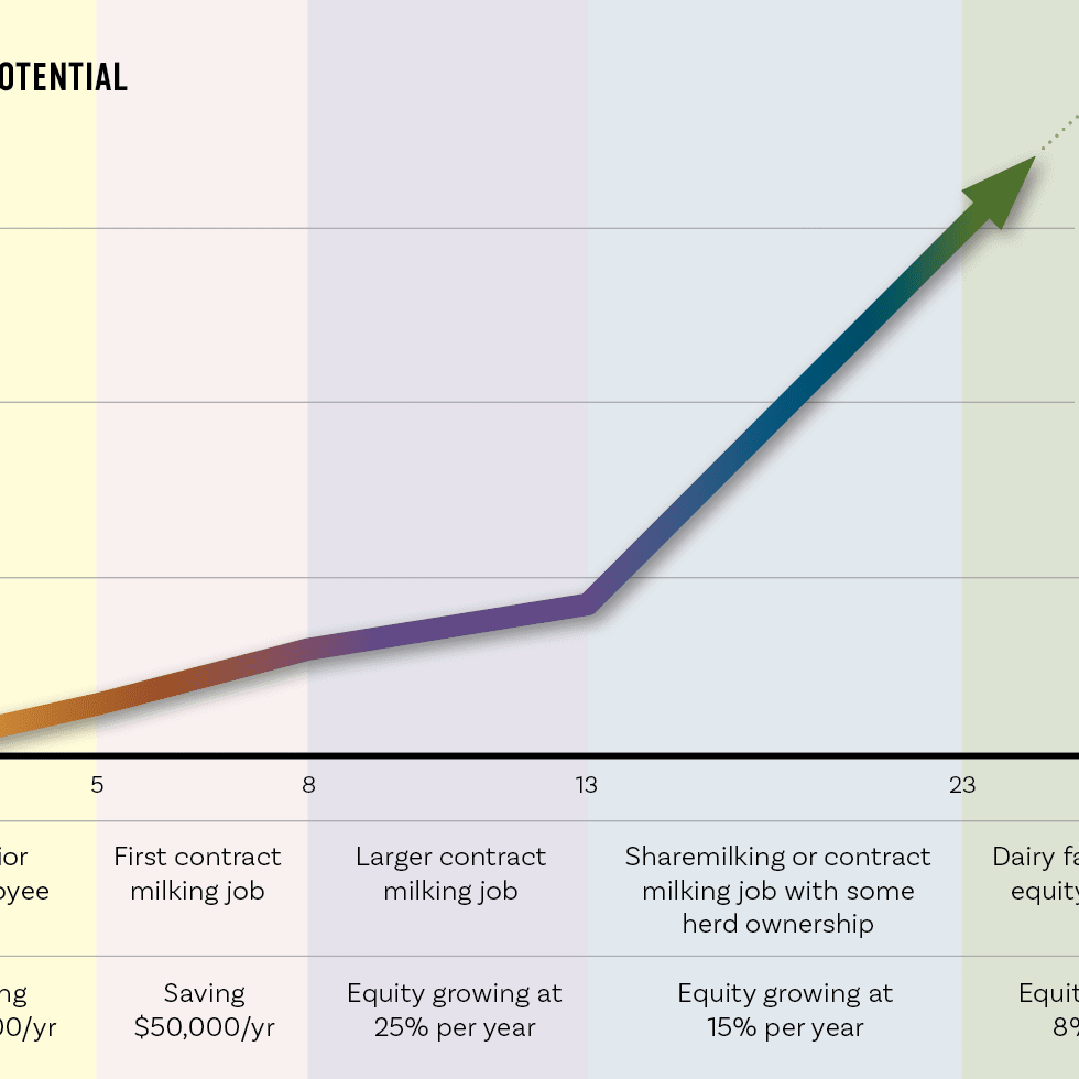 Creating significant wealth and building equity in the dairy sector is not just a possibility, it’s exciting and achievable with a clear strategy, disciplined action and an understanding of some basic principles. Paul Bird (DairyNZ) and Lynaire Ryan (Agribusiness Education) join forces to outline* Steps to Wealth Creation in the New Zealand Dairy Industry. Words Lynaire Ryan & Paul Bird.