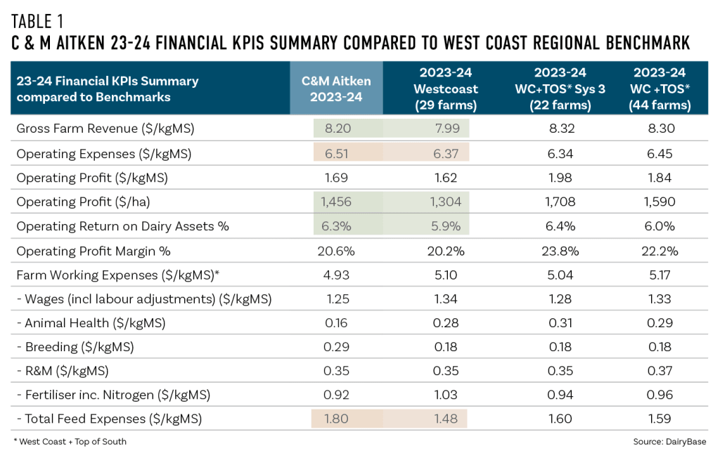 Just like her banking days, the figures count. The most recent figures available for the farm are from the 23-24 season, where her farm working expenses were $4.93/kg MS and her operating profit was $1.69/kg MS and $1,456/ha. That was $150/ha above DairyNZ’s DairyBase benchmark analysis for 29 West Coast farms.