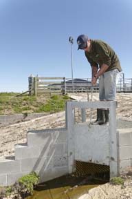 Pumping costs are low due to the liquidity of the material needing only a small pump, which fills the floodwash tank and also irrigates the land. The water is recycled many times through the 25,000 litre floodwash tank into the yard, and occasionally down the feedpad through a similar system before it goes on to the pasture. The pond size is also smaller because of the greenwater being recycled.