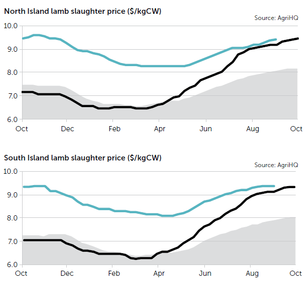 The 2022/23 season will kick off October 1 with a nine in front of prices, much like last year. The odd contract out to Christmas suggests pricing should hold up well over the balance of 2022. But that will be dependent on all meat processors holding a similar outlook in terms of pricing intentions and overseas demand continuing to support these expectations. To compare, by Christmas last year, AgriHQ lamb slaughter prices were averaging $8.95/kg in the North Island and $8.60/kg in the South Island.
