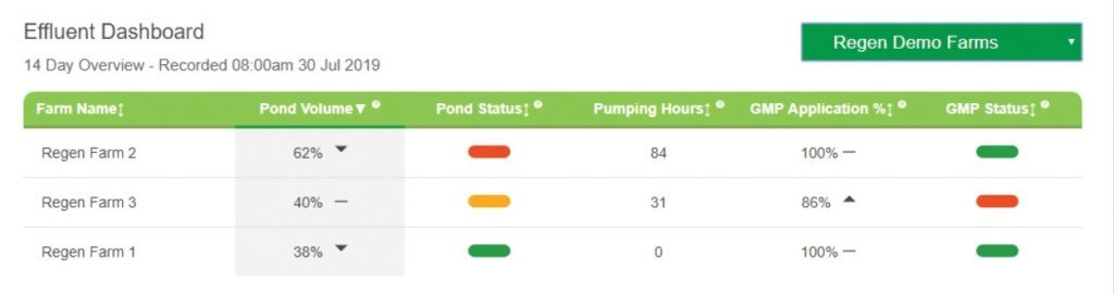 The effluent tool is easily actioned by daily texts informing the team (as many team members as needed can be sent the message) how much effluent can be applied that day. The mobile app dashboard uses a very simple traffic light system to indicate whether storage is on target and applications have been made at suitable times.