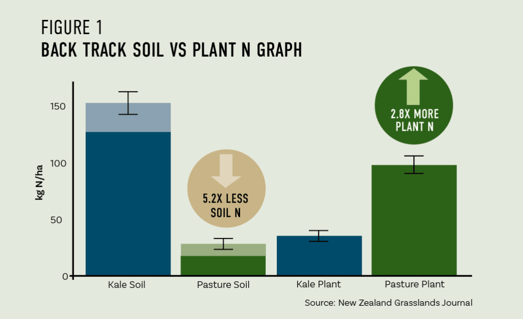 New research, conducted on commercial dairy farm, ‘Backtrack Dairies’ near Methven, provides compelling evidence that wintering on diverse pastures significantly reduces the risk of nitrogen (N) loss compared with traditional kale (or fodder beet) systems, offering a potential alternative for those considering their options around managing their N footprint.