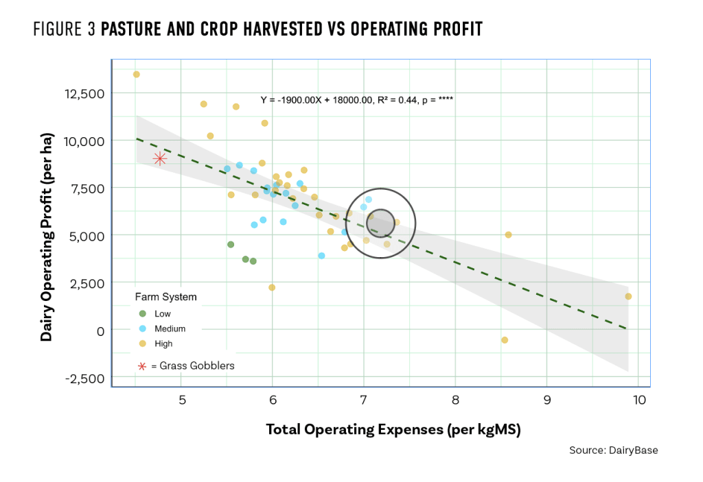 One of the criticisms of lower input systems is they leave profit on the table through high payout periods because they haven’t chased production, but Mick says he was happy to see that benchmarking analysis showed the farm still sat amongst the top performers for profit last season too.