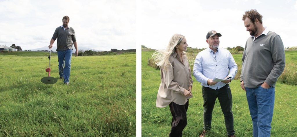 Farm consultants Grant Leigh and Alicia Riley have worked with the Armstrongs for several years and are part of the management team, with Grant advising on the Eltham Road and drystock farms and Alicia on the Waiteika Road property.